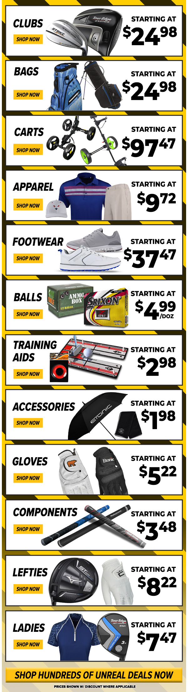 Golf Discounts And Promotions - Rock Bottom Golf Golf Discounts And Promotions Promotions Don't pay too much and get left in the Stone Age. Save MORE when you check out all the hottest promos on the site on one super convenient page! Simply add any Clearance Cave items to your cart for an instant 25% OFF discount! Click to Claim! Enjoy FREE Home In 2! Shipping on these items today!