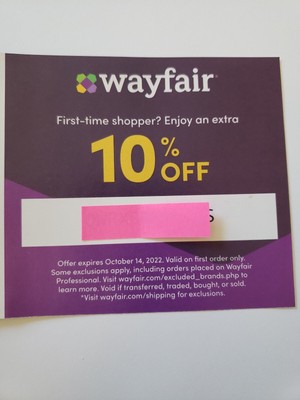 WAYFAIR Coupon 10% Off Your First Order Exp. 11/14/2022 | eBay WAYFAIR Coupon 10% Off Your First Order Exp. Something went wrong. View cart for details.